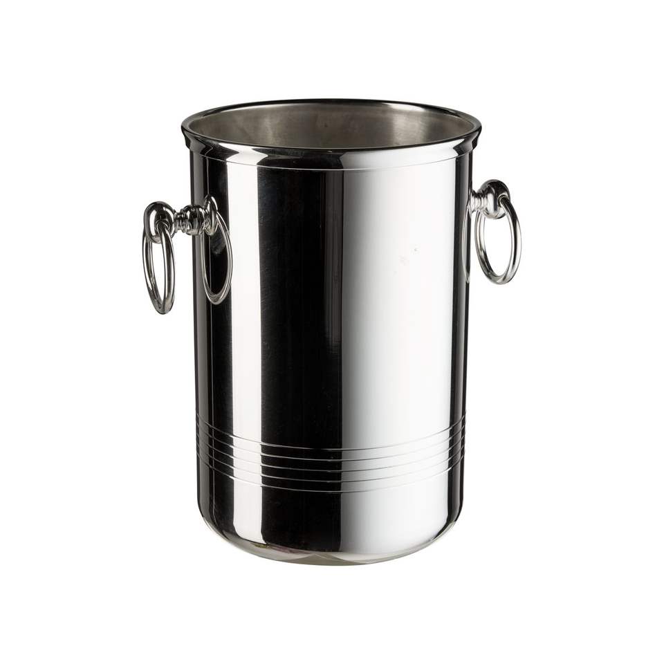 ถังแช่ไวน์โลหะเคลือบเงินดีไซน์ใหม่ล่าสุด พร้อมหูจับแบบวงแหวน ถังน้ำแข็งแชมเปญสำหรับงานปาร์ตี้ ถังแช่เบียร์