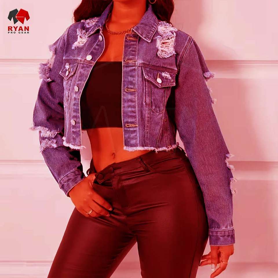 แจ็กเก็ตผ้ายีนส์สำหรับผู้หญิงเสื้อแจ็กเก็ตผ้ายีนส์ปักโลโก้สไตล์ลำลองดีไซน์ใหม่ล่าสุด