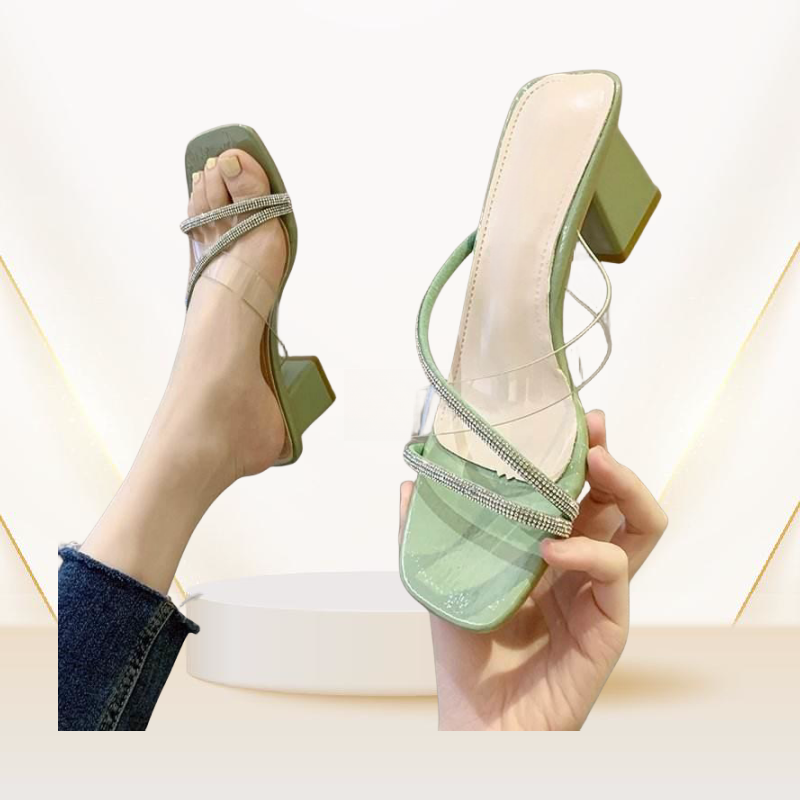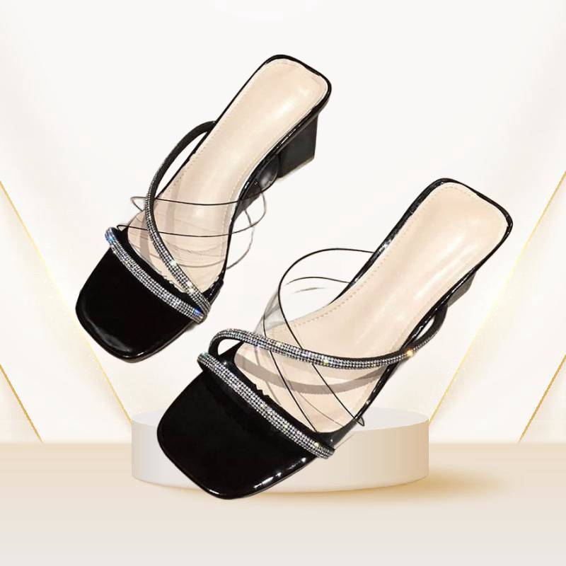 รองเท้าแตะส้นสูงประดับพลอยเทียมรุ่นดีไซน์ใหม่ล่าสุดรองเท้าแตะสตรีหัวรอบส้นสูงสุดเซ็กซี่