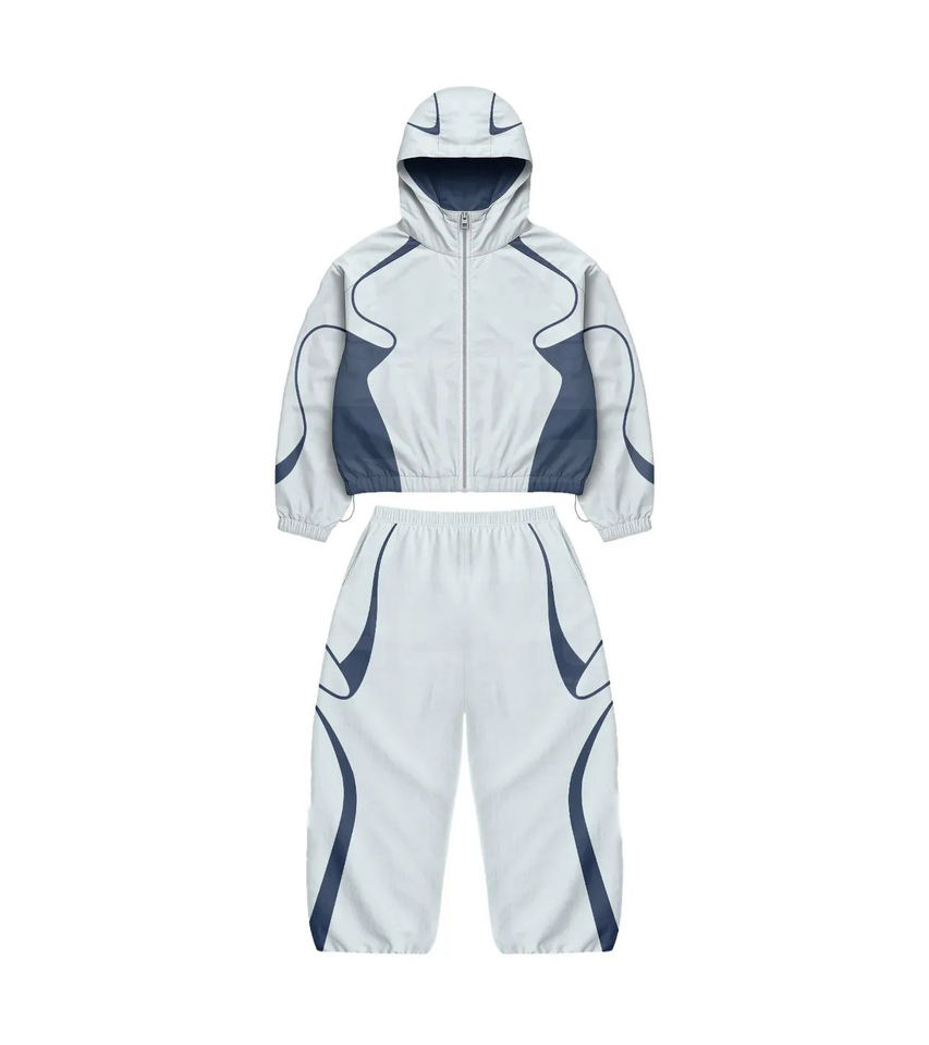 ชุดวอร์มกันลมดีไซน์ใหม่ล่าสุด กางเกงและเสื้อแจ็คเก็ตมีฮู้ด ผลิตจากไนลอน 100% สไตล์สตรีทแวร์