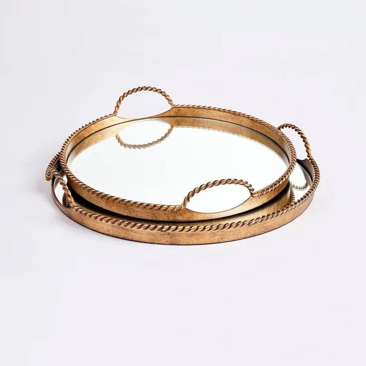 ถาดเสิร์ฟโลหะทรงรีที่ออกแบบใหม่ล่าสุดแผ่นโลหะขัดเงาทองสวยงามผลิตในอินเดียโดย khoosi ในต่างประเทศ