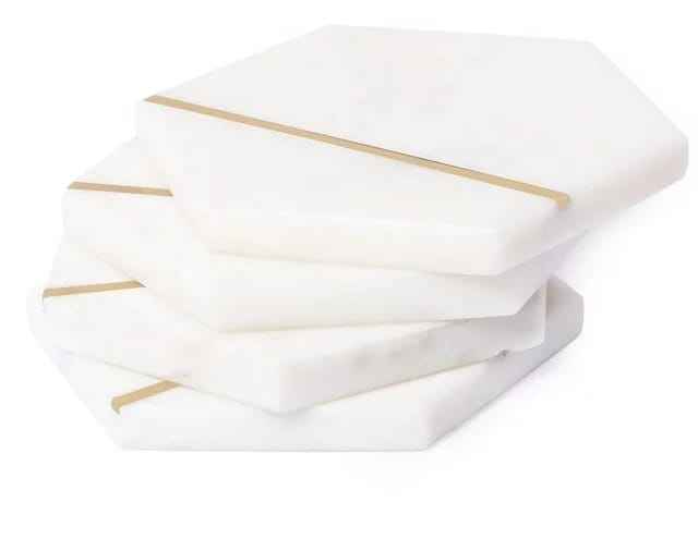 แผ่นรองแก้วหินอ่อนสีขาวดีไซน์ใหม่ล่าสุด ทำด้วยมือ เป็นมิตรกับสิ่งแวดล้อม คุณภาพสูง สำหรับวางบนโต๊ะอาหาร คุณภาพส่งออก