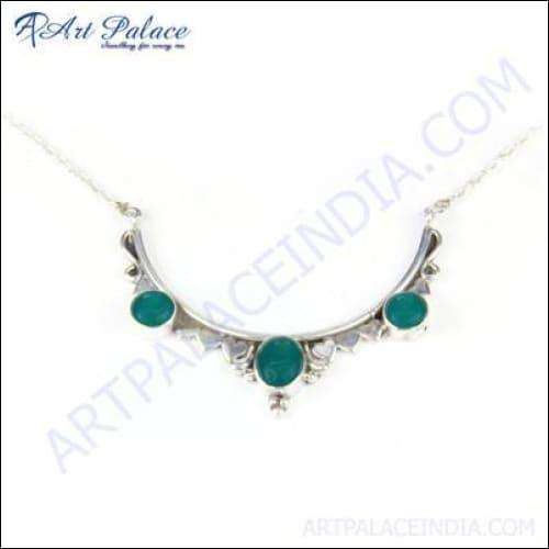 สร้อยคอพลอยชนเผ่าดีไซน์ใหม่ล่าสุดสีเงินพร้อมจี้สร้อยคอสีเขียวโอนิกซ์