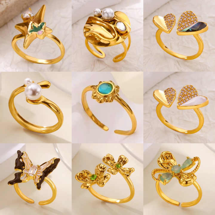 ชื่อผลิตภัณฑ์:แหวนรูปหัวใจทำจากสเตนเลสสตีลเคลือบทอง18K