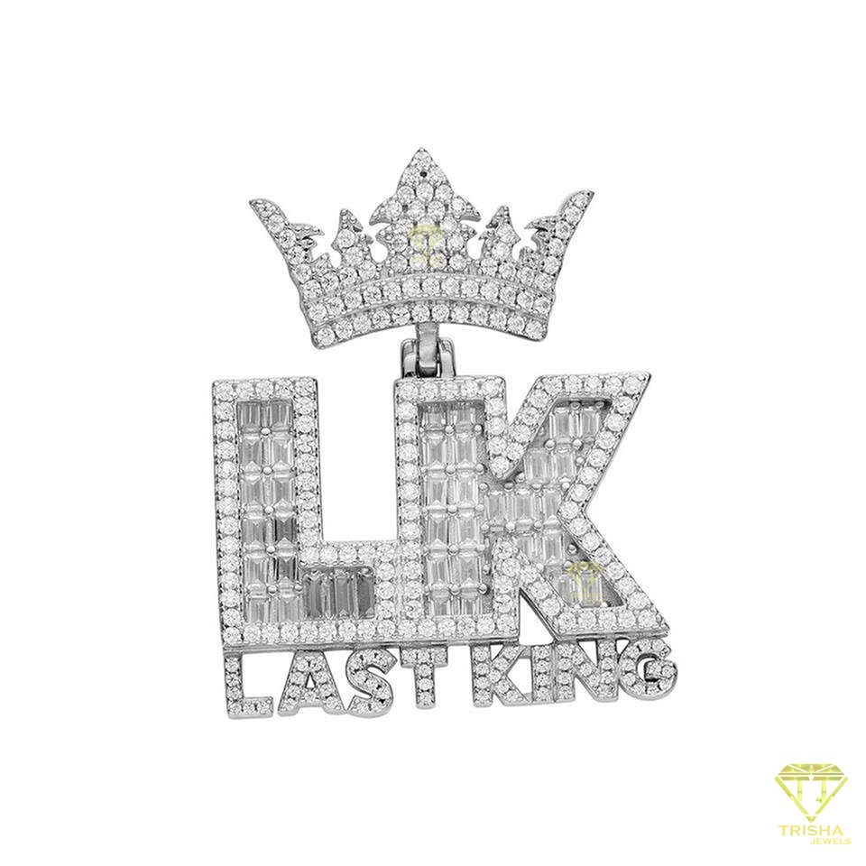 เครื่องประดับฮิปฮอปสุดสวยใหม่ล่าสุดสร้อยคอจี้รูปมงกุฎประดับเพชร925ตัวอักษร LK สำหรับผู้ชาย