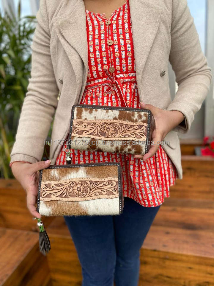 Type:Designer Tooled Leather Tassel Clutch