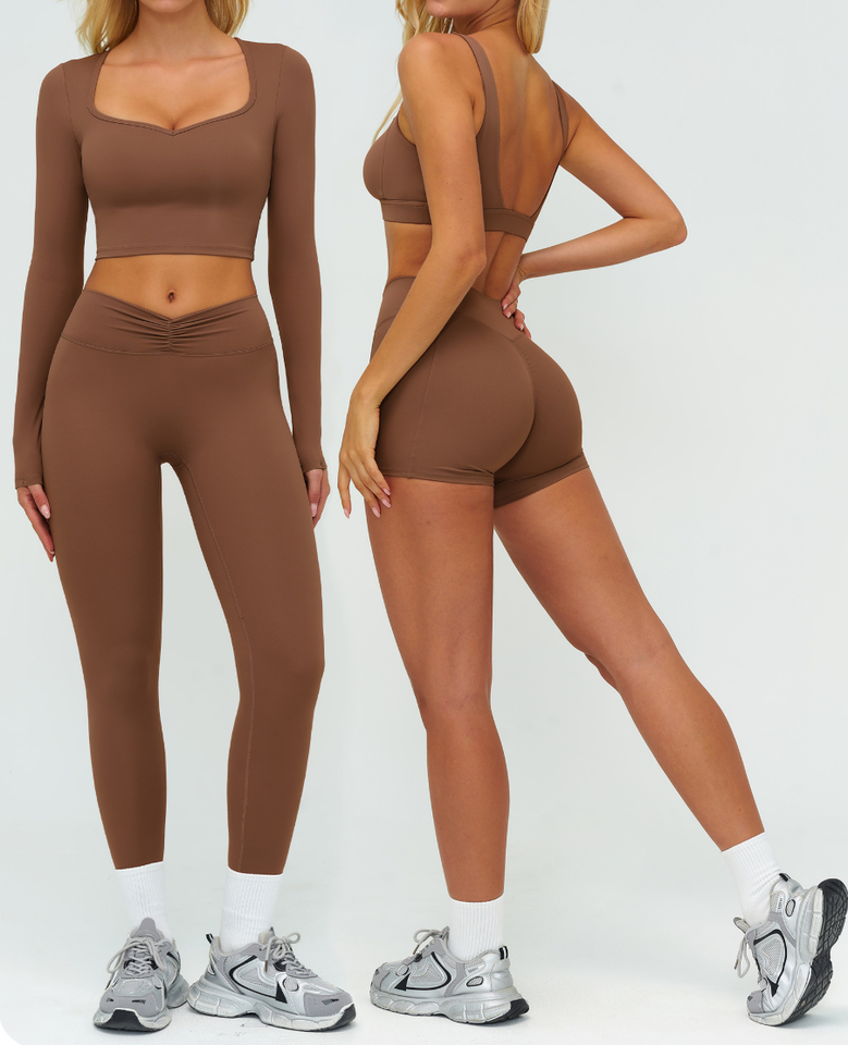 ชุดออกกำลังกายสำหรับผู้หญิง 6 ชิ้น เสื้อชั้นในกีฬาแบบปรับได้รุ่นใหม่ล่าสุด พร้อมกางเกงโยคะ ระบายอากาศได้ดี สีพื้น