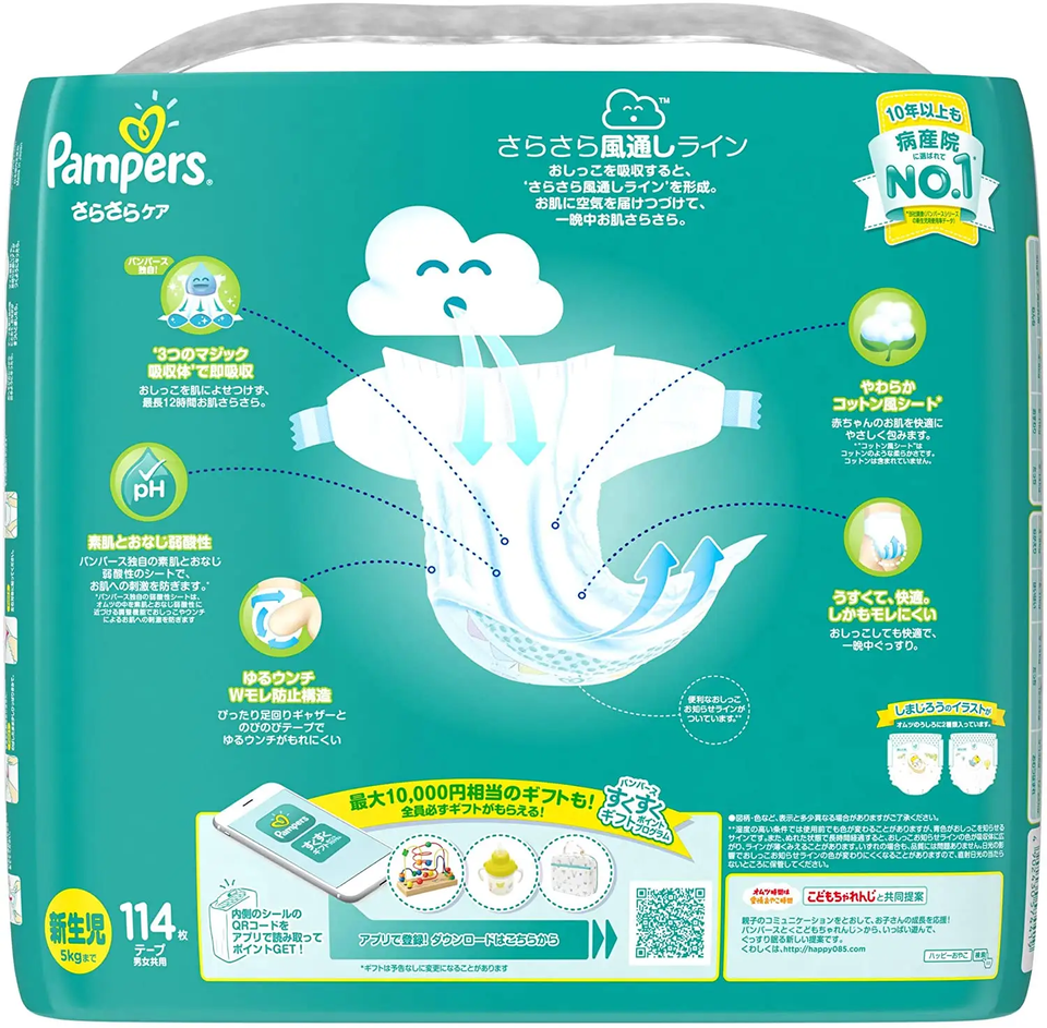 ผ้าอ้อมเด็กแบบใช้แล้วทิ้งผ้าอ้อมเด็กแบบเทปแพ็คขนาดจัมโบ้ NB114ใหม่ล่าสุดผลิตในประเทศญี่ปุ่น
