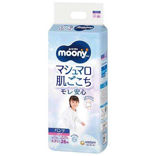ผ้าอ้อมสำเร็จรูปยี่ห้อมูนี่ ยี่ห้อยูนิชาร์ม ประเทศญี่ปุ่น ผ้าอ้อมเด็กแบบกางเกง ผ้าไม่ทอ ระบายอากาศได้ดี ป้องกันการรั่วซึม 3 มิติ สำหรับเด็กแรกเกิด ไซส์ XXL 26 ชิ้น