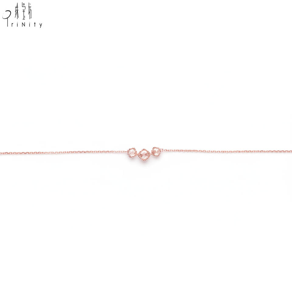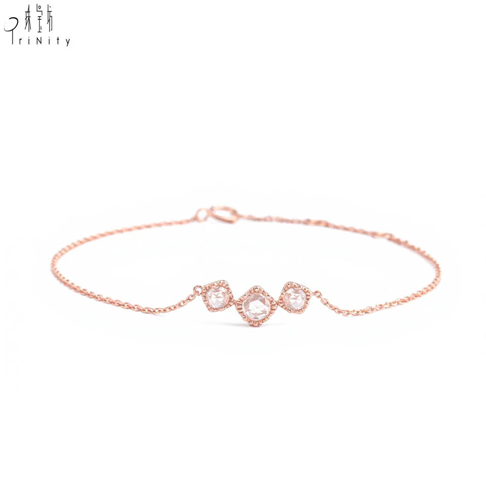สินค้าใหม่ล่าสุด สร้อยข้อมือเพชรสุดน่ารัก เครื่องประดับสำหรับผู้หญิง ใส่ได้ทุกวัน ทองคำแท้ 18K สีโรสโกลด์ เพชรแท้ธรรมชาติ สร้อยข้อมือแบบโซ่