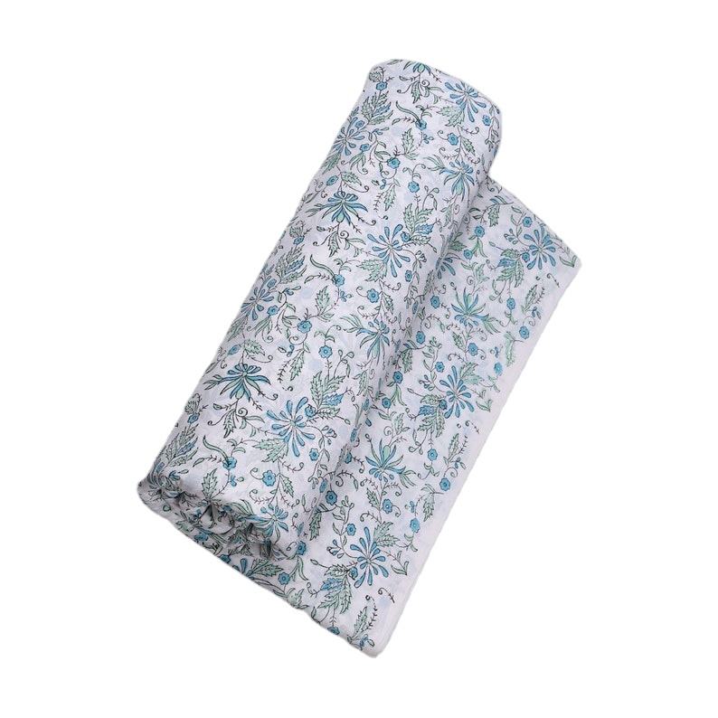 ผ้าฝ้ายพิมพ์ลายดอกไม้สไตล์อินเดียสีฟ้าเซรูเลียนและสีเขียวเฟิร์น 100% ผ้าฝ้ายแท้ ขายเป็นหลา สำหรับเสื้อผ้าและชุดเดรสผู้หญิง