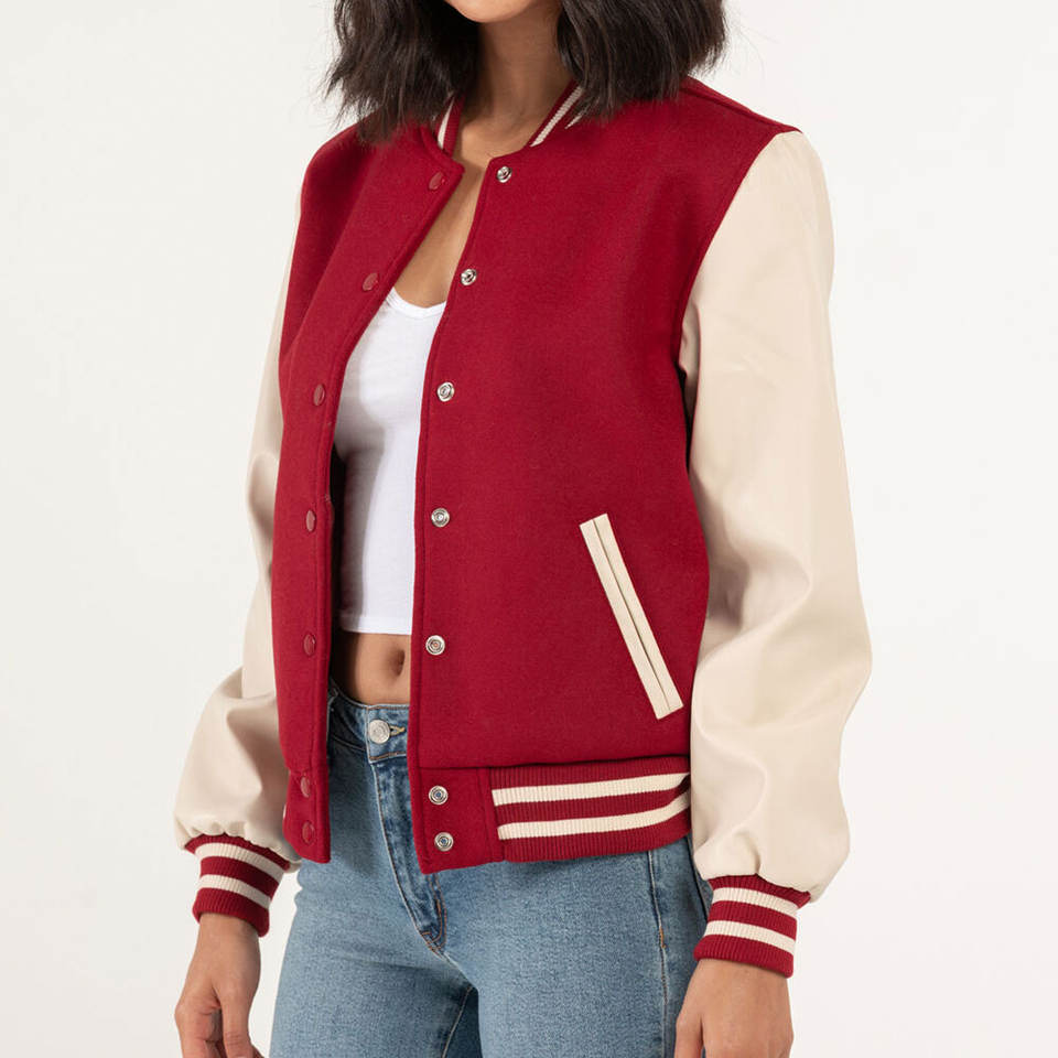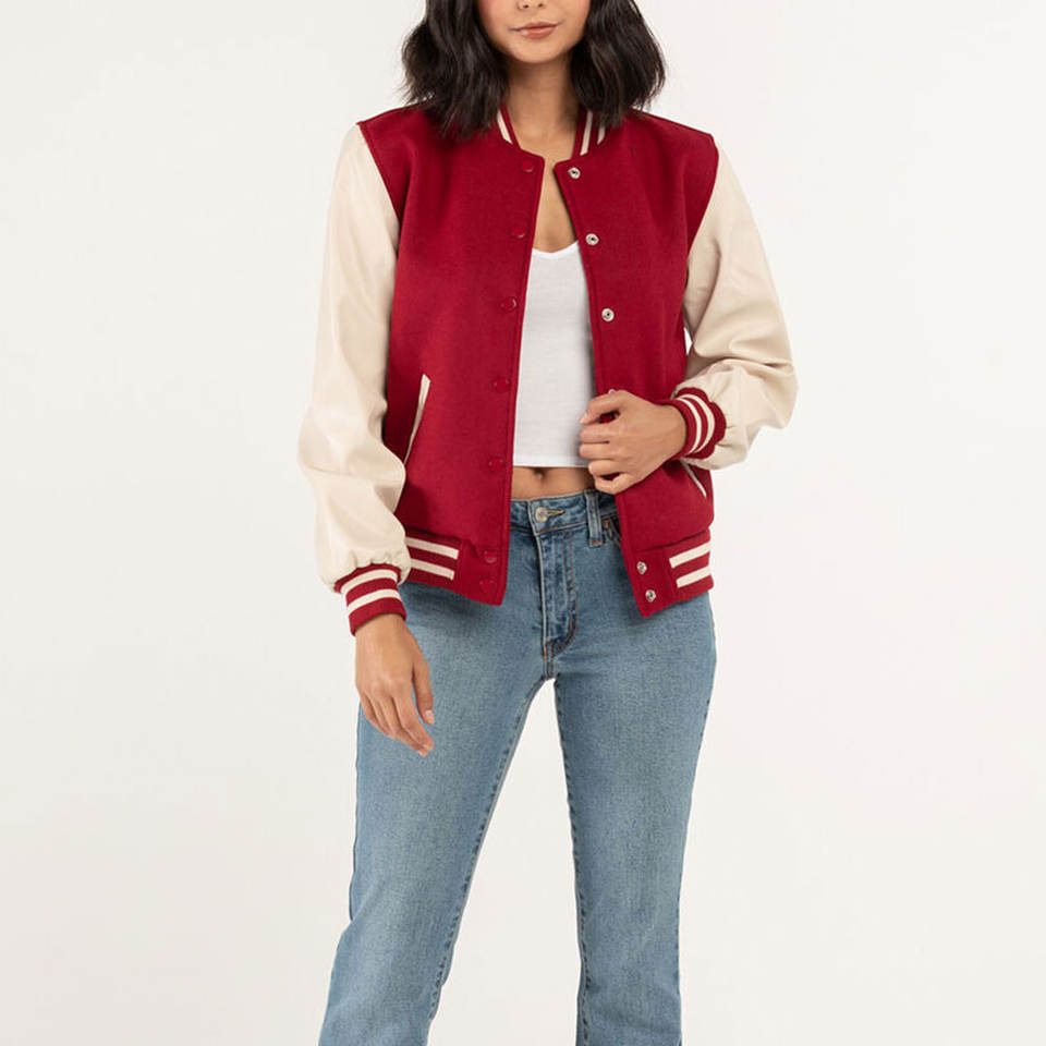 เสื้อแจ็กเก็ตทีมโรงเรียนสำหรับผู้หญิงแขนยาวปรับขนาดและโลโก้ได้ตามต้องการสไตล์ใหม่ล่าสุด