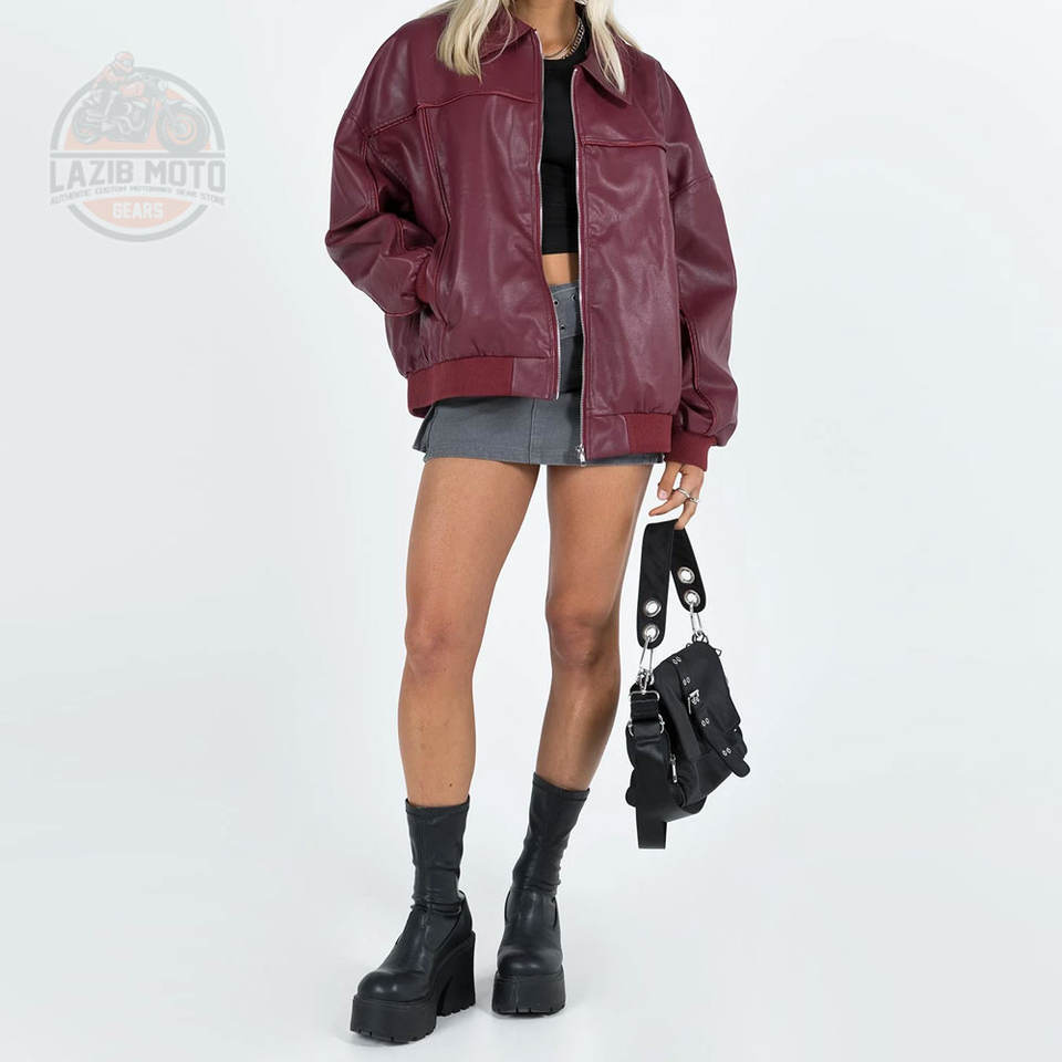 ชื่อผลิตภัณฑ์:แจ็คเก็ตบอมเบอร์สไตล์หนังสำหรับผู้หญิงออกแบบได้ตามต้องการ