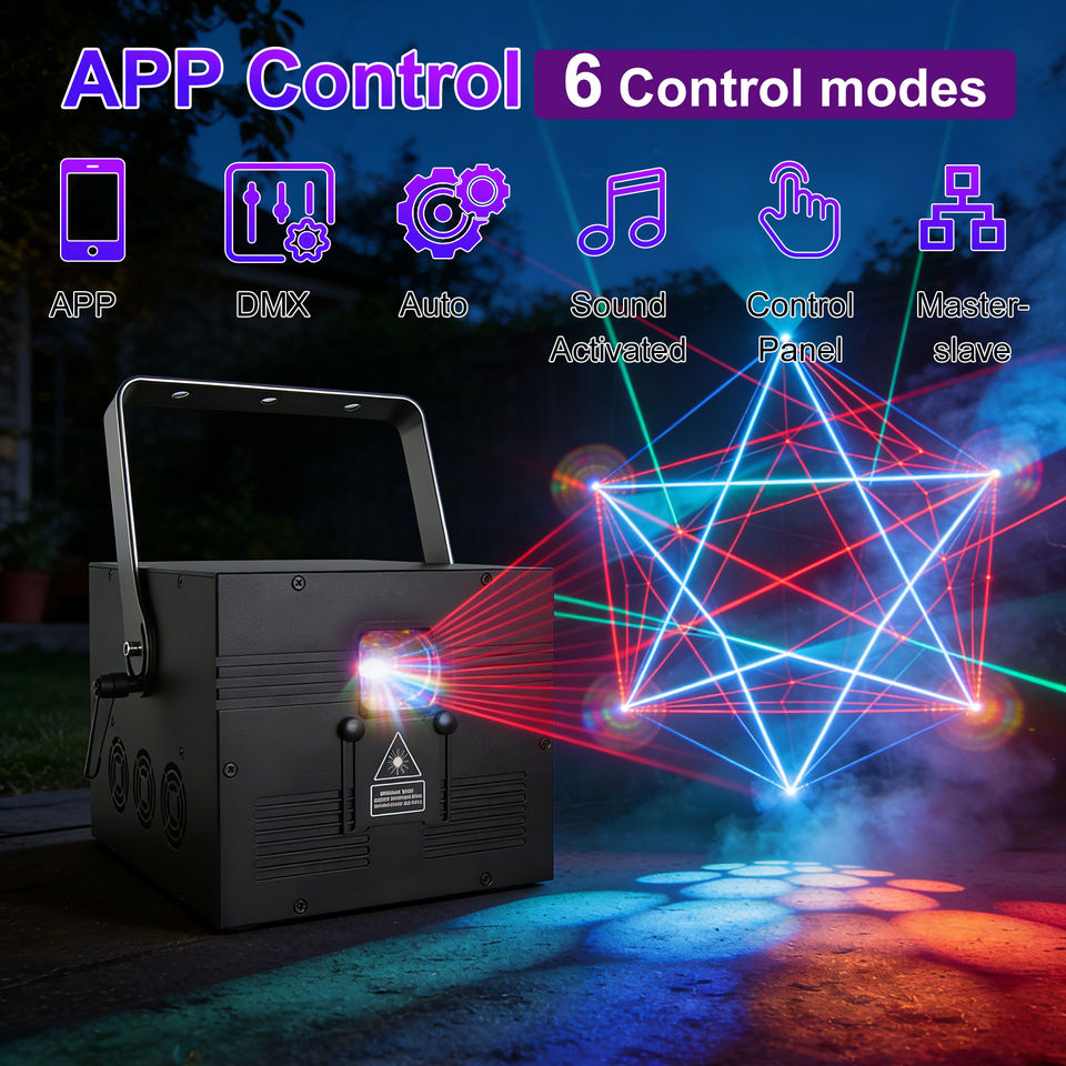 ไฟเลเซอร์ RGB แอนิเมชั่นสีสันสดใสรุ่นใหม่ล่าสุด TMUT 10W ระดับ IP20 ตัวเรือนอะลูมิเนียมอัลลอยด์ รองรับ ILDA DMX512 ควบคุมผ่านแอพและเสียง สำหรับงานปาร์ตี้ ดีเจ กลางคืน