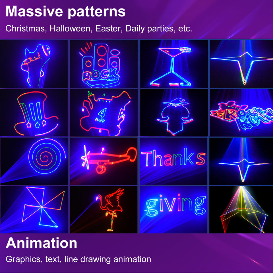 ผลกระทบของโปรแกรม:ลำแสงหลากหลายรูปแบบ, กราฟิกที่ซับซ้อน, แอนิเมชัน, แอนิเมชันในตัว 128 แบบ