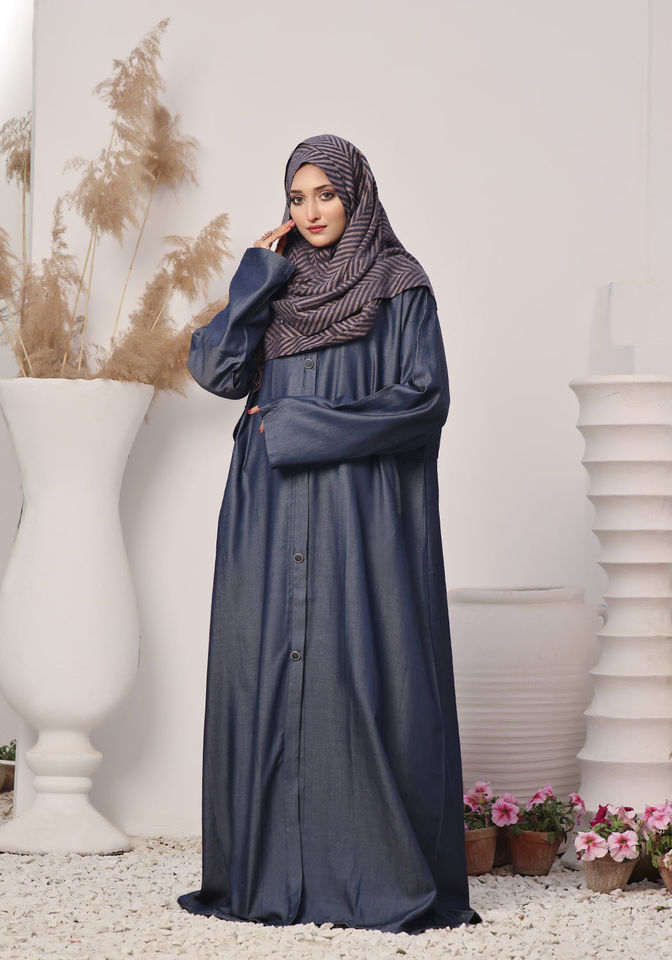 ชุดเดรสผ้าเดนิมอาบายาสีฟ้าสำหรับสตรีขนาดพิเศษระบายอากาศได้ดี