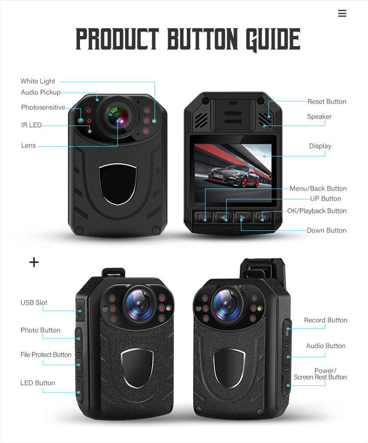 กล้องติดตัวบันทึกวิดีโอ HD รุ่นใหม่ล่าสุด กล้องบันทึกภาพแบบสวมใส่กันน้ำ สำหรับเจ้าหน้าที่รักษาความปลอดภัย