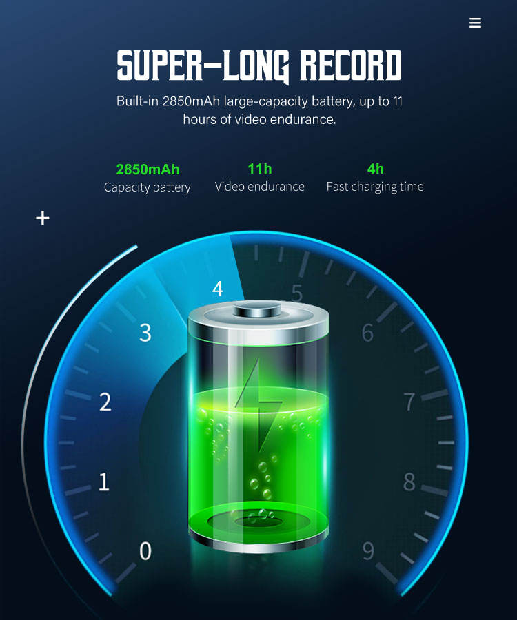 แบตเตอรี่:แบตเตอรี่ลิเธียม 2850mAh อายุการใช้งานแบตเตอรี่ 11 ชั่วโมง สแตนด์บาย 30 วัน