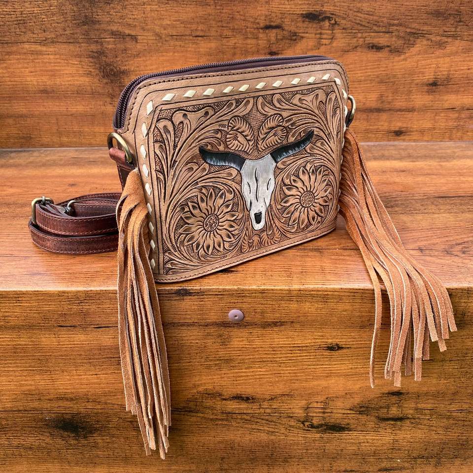 Type:Hand Tooled Leather Fringe Purse