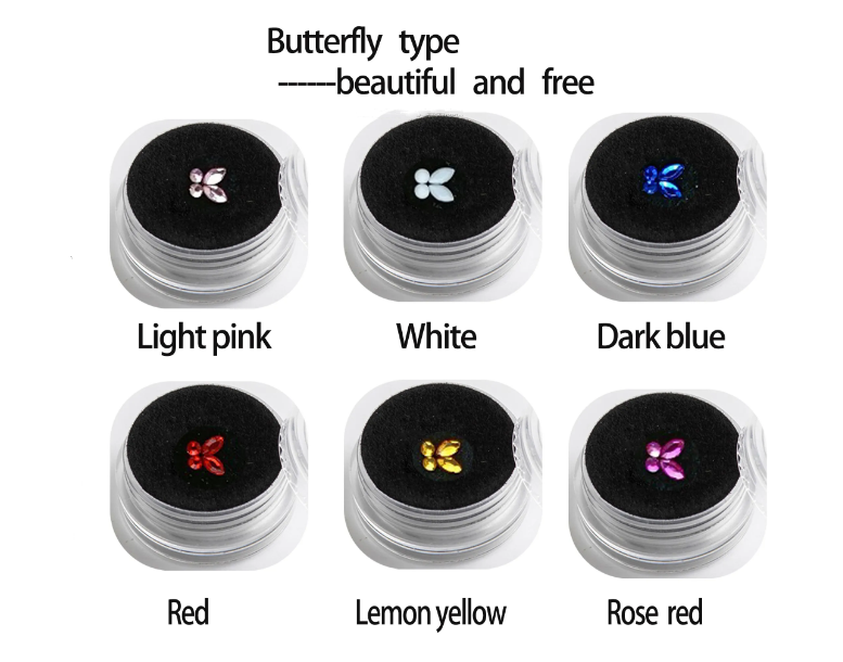ใหม่ล่าสุดขายส่งฟันอัญมณีผีเสื้อฟันอัญมณีตาม้ารอบรูปร่างสีฟ้าสีเขียวโอปอลฟันคริสตัลสำหรับกาวชุด