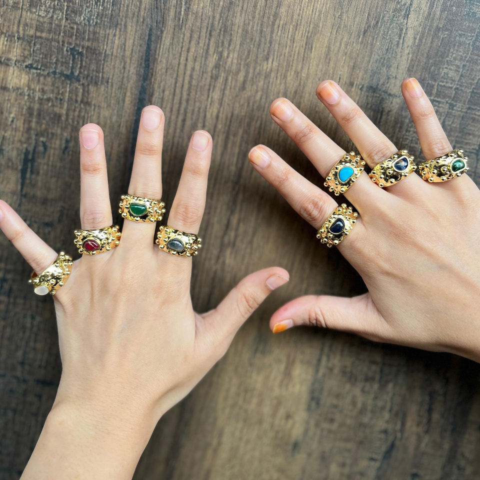 แหวนพลอยทับทิมสีเทอร์ควอยซ์โมแฮร์ดีไซน์ใหม่ล่าสุดเครื่องประดับแหวนแฟชั่นชุบทอง18K ปรับได้