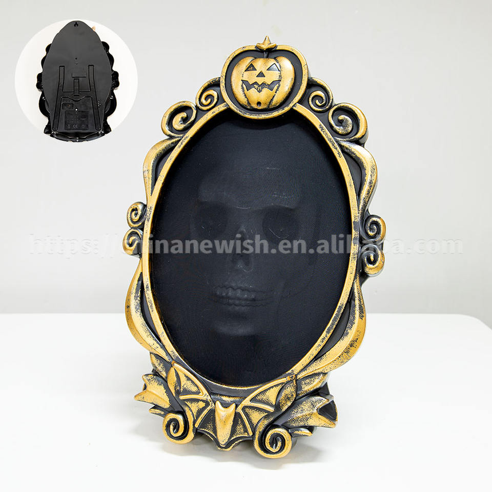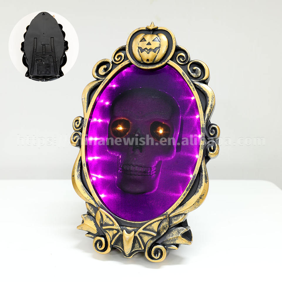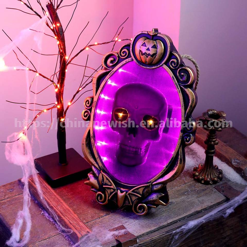 ของตกแต่งใหม่ ขนาด 24.5*8.5*38 ซม. ใช้แบตเตอรี่ 3AA หน้าผีพลาสติกดีดออกมาจากกระจก พร้อมเสียงน่ากลัว ไฟ LED 22 ดวง ใช้ได้ทั้งแบบแขวนและตั้งพื้น