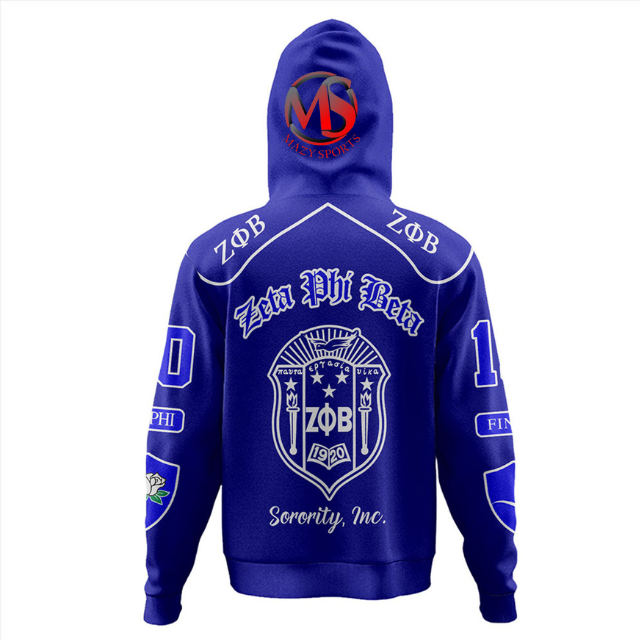 เสื้อมีฮู้ด100% ผ้าโพลีเอสเตอร์มีซิปพิมพ์ซับลิเมชันทั่วทั้งเสื้อมีฮู้ดแขนยาว Zeta phi Beta