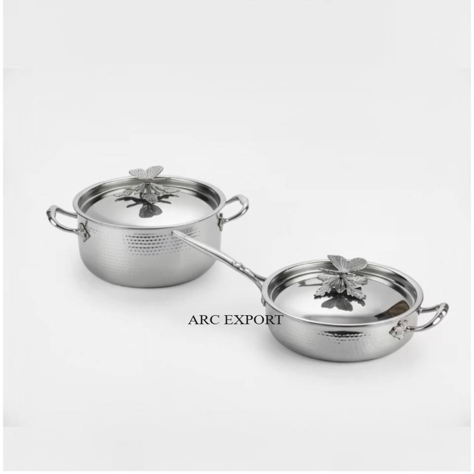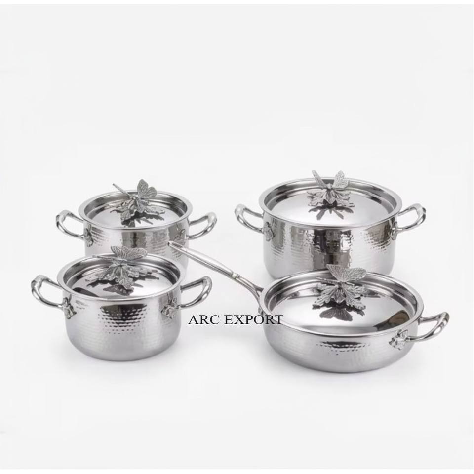 ชุดเครื่องครัวสเตนเลสสตีลเคลือบทองคุณภาพสูง ดีไซน์ลายผีเสื้อ งานตีขึ้นรูปด้วยมือ สไตล์โมเดิร์น รุ่นใหม่ล่าสุด