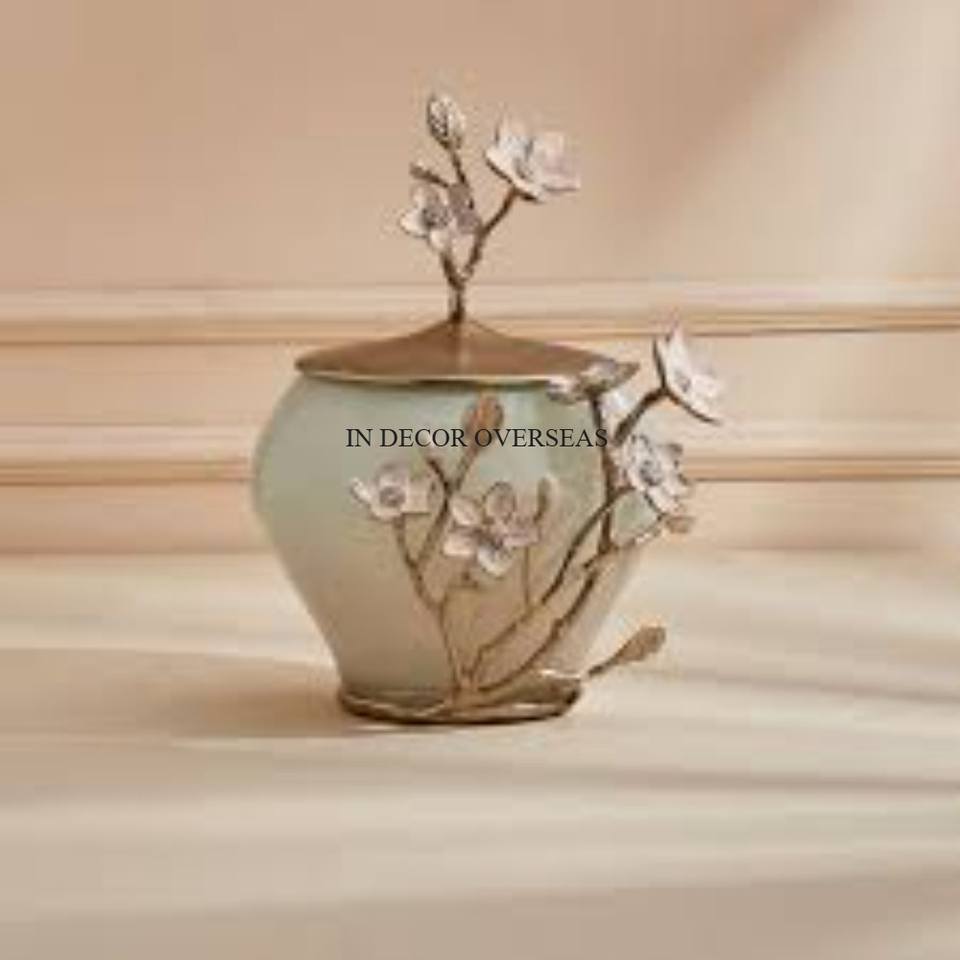 มาใหม่ฐานโลหะหนักชุบทองพร้อมดอกตูมสีดำดีไซน์ดังเครื่องครัวกระป๋องแก้วใส