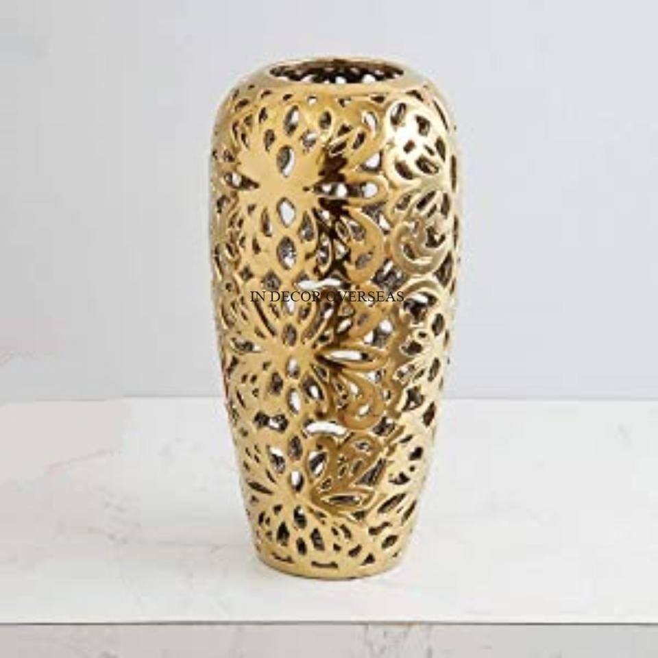 แจกันดอกไม้ทำจากโลหะชุบทองเกรดสูงมาใหม่พร้อมฐานหินอ่อนสีขาวสำหรับตกแต่งโต๊ะในบ้านและโรงแรม