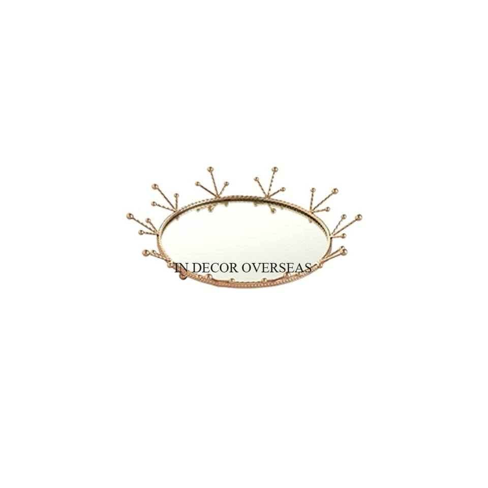 ถาดเสิร์ฟอาหารกระจกทรงกลมและสินค้าอื่นๆพร้อมขอบโลหะชุบทองดีไซน์เนอร์ที่มีเอกลักษณ์จากอินเดีย