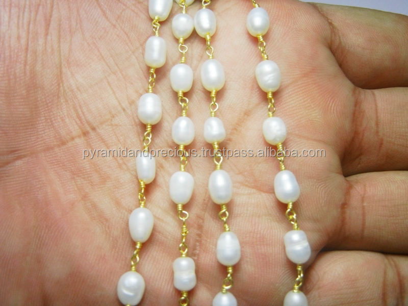 สร้อยลูกปัดไข่มุกน้ำจืดชุบทองนาโนลูกปัดทรงรีสำหรับทุกเพศสินค้าใหม่