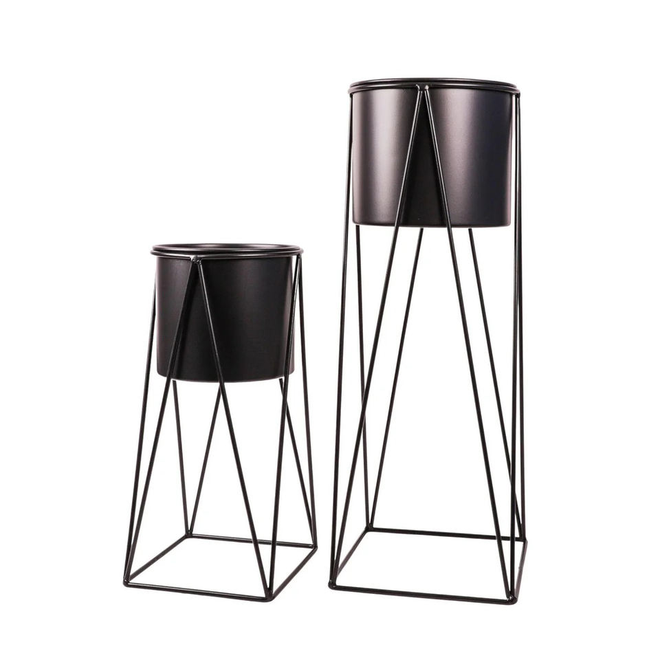 กระถางต้นไม้เหล็กสีดำเคลือบสีดำสำหรับตกแต่งโต๊ะกระถางปลูกต้นไม้ในร่มดีไซน์ใหม่ที่น่าสนใจ