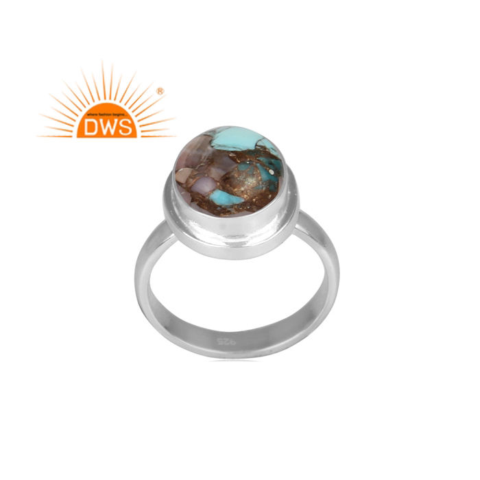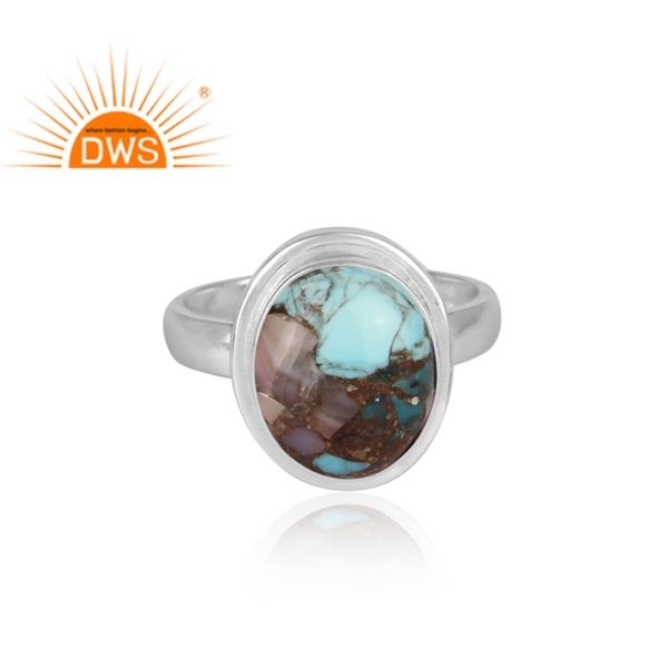 แหวนทองแดงโมฮาฟธรรมชาติสีเงินสเตอร์ลิงสีชมพูพลอยเทอร์ควอยซ์ดีไซน์ใหม่