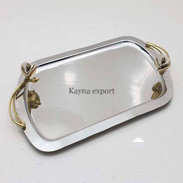 ถาดสแตนเลสขัดเงาดีไซน์ใหม่ถาดเสิร์ฟช็อคโกแลตถาดเสิร์ฟสีทองตกแต่งหรูหราดีไซน์ใหม่