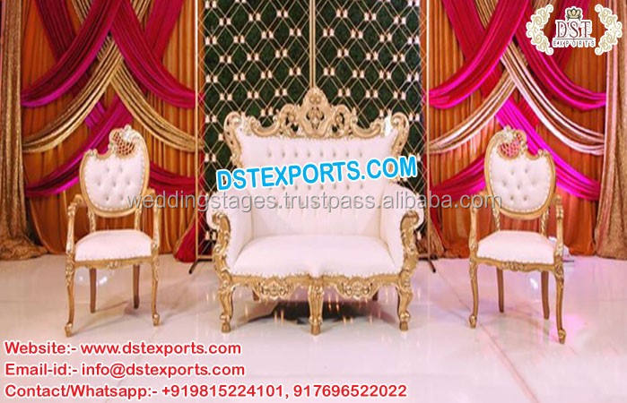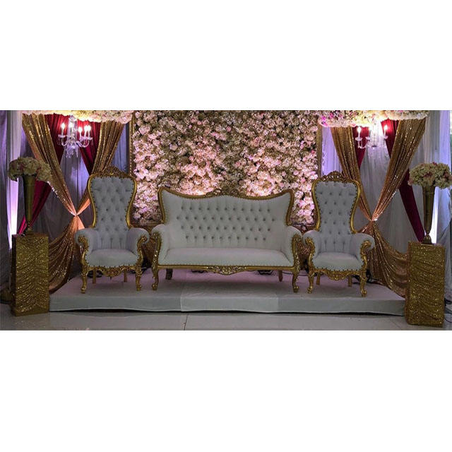 ออกแบบใหม่กลับสูงสีขาวทองชุดเฟอร์นิเจอร์หรูหราฮินดูแต่งงานออกแบบโซฟาชุดโซฟาบัลลังก์แต่งงานสไตล์สหรัฐอเมริกา