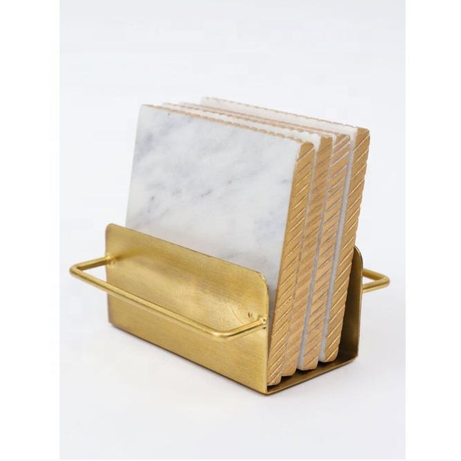 ที่ใส่กระดาษทิชชูหินอ่อนตกแต่งดีไซน์ใหม่ทันสมัย พร้อมโลหะชุบทอง ทำด้วยมือ 100% สำหรับตกแต่งโต๊ะในห้องนั่งเล่น