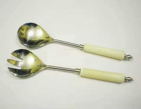 ชุดเสริฟสลัดสแตนเลสหูจับหินขัดออกแบบใหม่มีดีไซน์สำหรับสลัดเครื่องครัวช้อนเสิร์ฟผัก