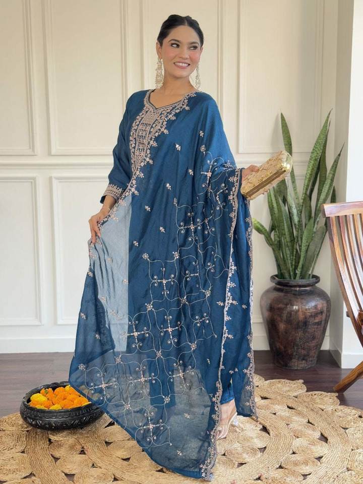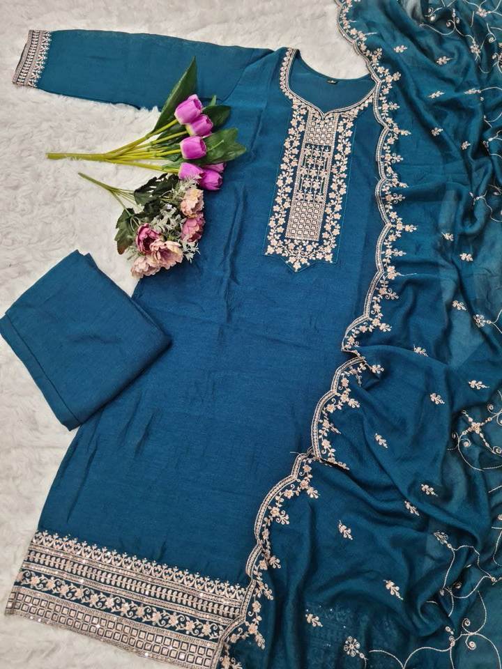 ชุดผ้าไหม vichitra 3ชิ้น/kurti จากนักออกแบบที่เพิ่งเปิดตัวใหม่