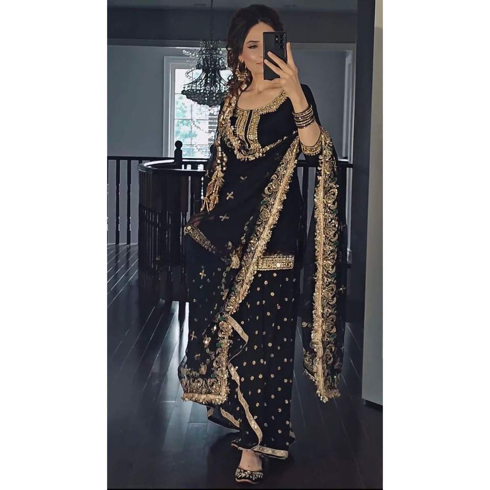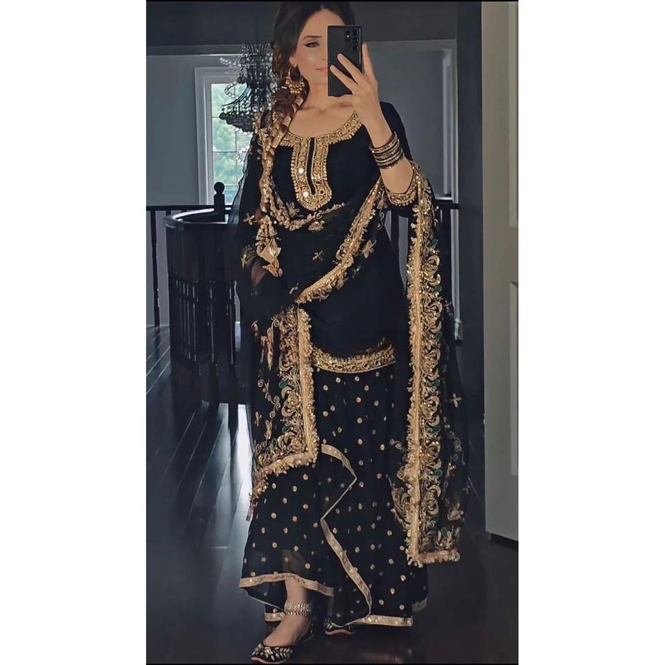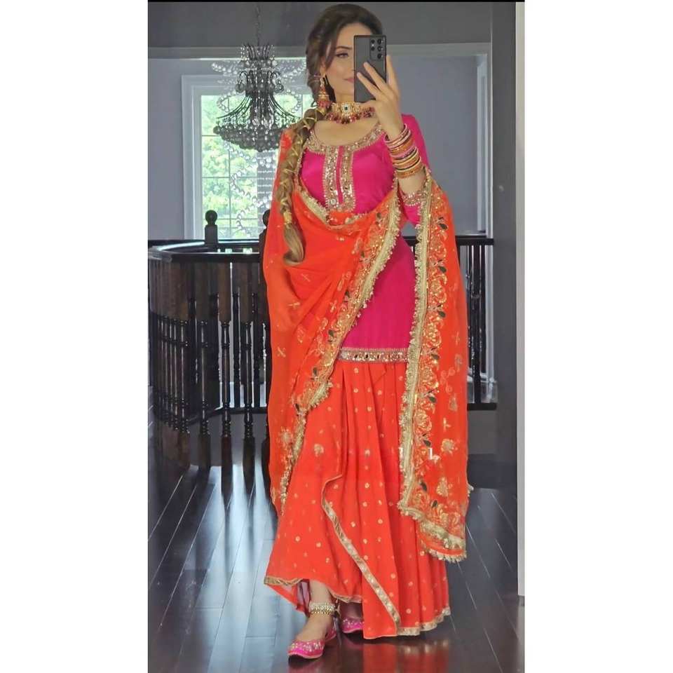 Newly Launched Label Mayra Orange Women's Party Wear Set Top Dhoti Skirt Dupatta Size S-36