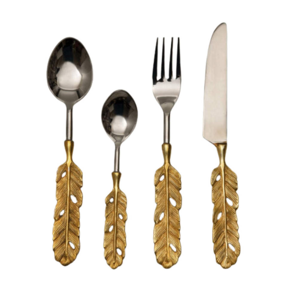 อุปกรณ์สแตนเลสขัดเงาพร้อมที่จับสีทองสำหรับร้านอาหารหรูงานเลี้ยงและกิจกรรมพิเศษ