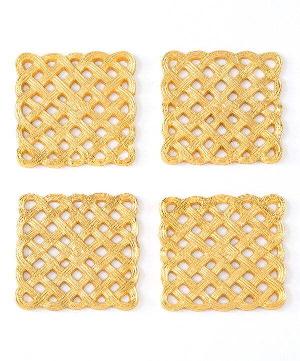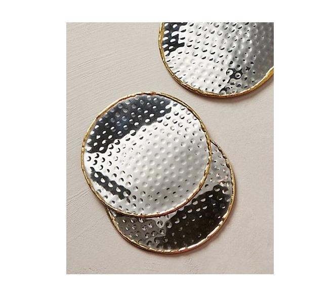 แผ่นรองแก้วทองเหลืองแผ่นรองจานสเตนเลสสตีลดีไซน์ใหม่ถาดรองจานแกะสลักโลหะ