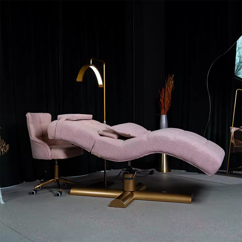 เตียงนวดเสริมสวยทันสมัยสีชมพู โครงไม้หุ้มหนัง PU โค้งรับขนตา ฟองน้ำความหนาแน่นสูง สำหรับใช้ในโรงแรมและห้องนั่งเล่น