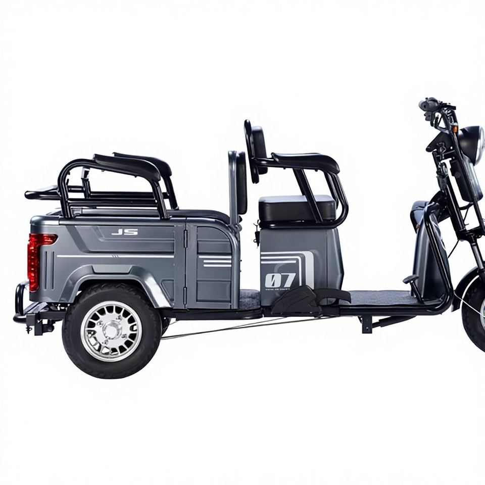 รถสามล้อไฟฟ้าสำหรับผู้ใหญ่รุ่นใหม่ 600W ความเร็วเดียว 48V ดีไซน์เปิดโล่ง โครงเหล็กคาร์บอนสูง
