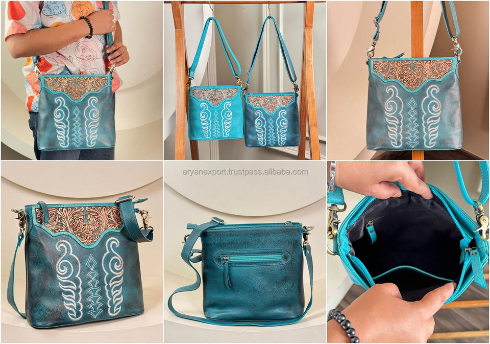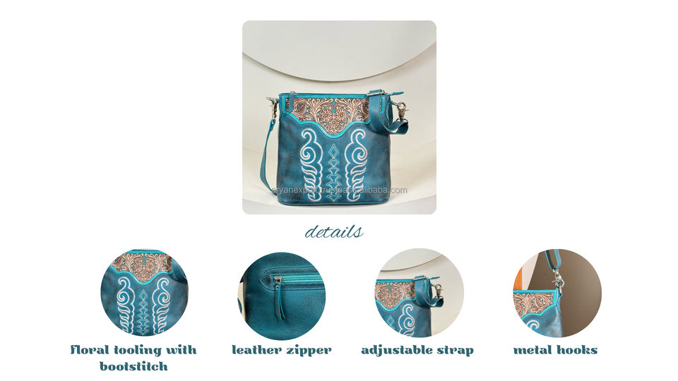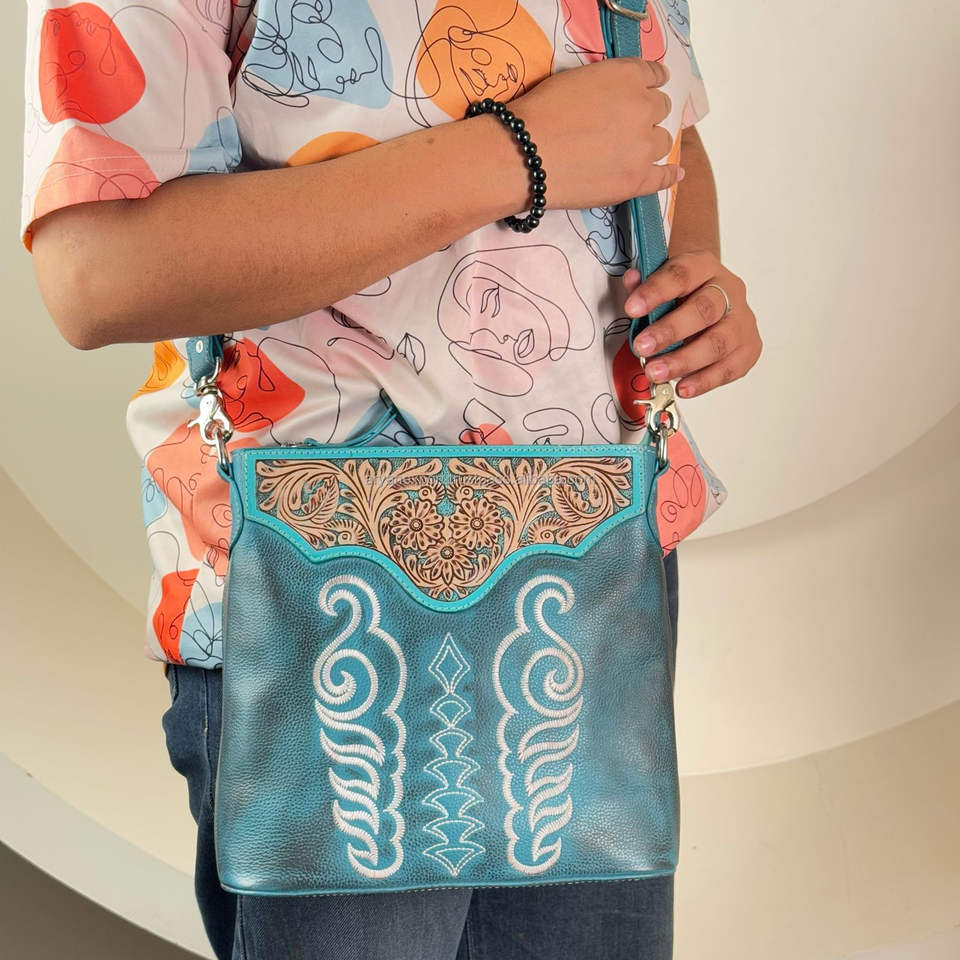 Product Name:Hand Tooled Leather Boot Stitch Crossbody Bag