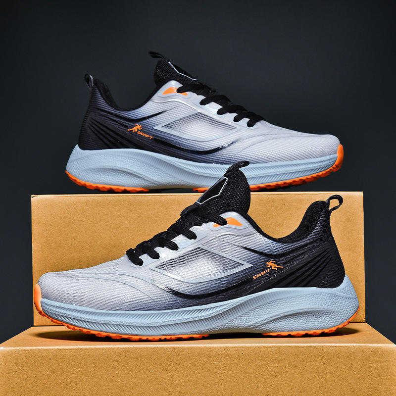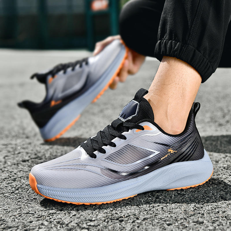 รองเท้าวิ่งกีฬาผู้ชายรุ่นใหม่ที่ใส่สบาย ระบายอากาศได้ดีและมีพื้นรองรับแรงกระแทก เหมาะสำหรับการวิ่ง