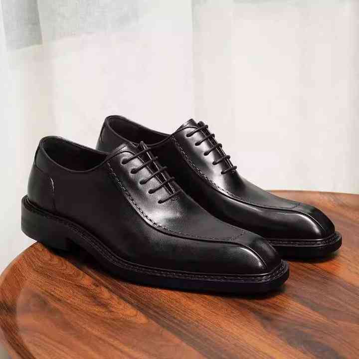 รองเท้าผู้ชายหนังแท้ พื้นยาง กันลื่น ระบายอากาศ น้ำหนักเบา เหมาะสำหรับงานแต่งงาน งานธุรกิจ และโอกาสทางการ