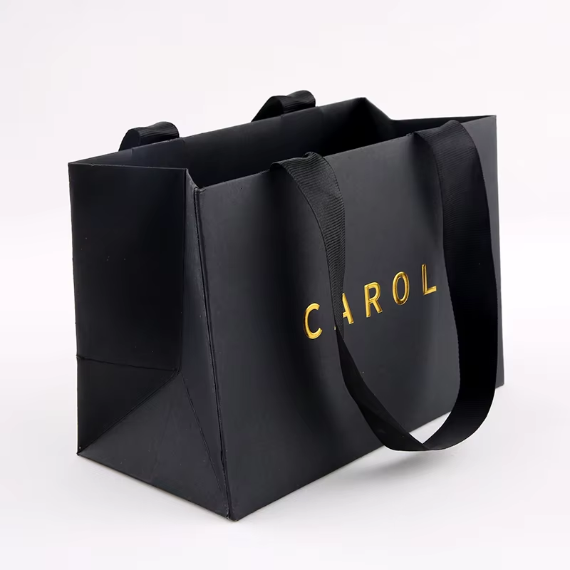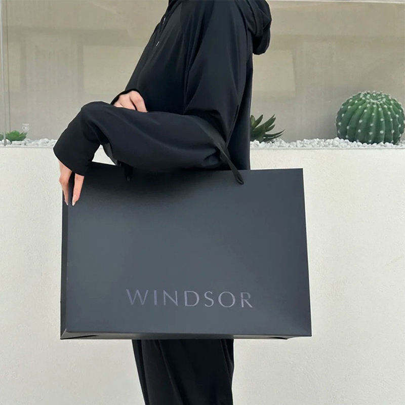 Newsense Black Custom Fabric Small Business Your Own logo Printed Branded Paper Gift Bags Luxury Shopping Bags Fashion US Made