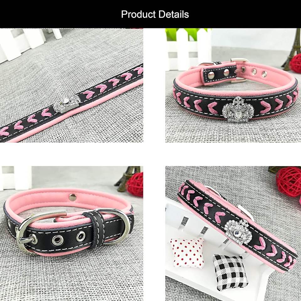 Newtensina ชุดสายรัดไนลอนสำหรับสุนัขและสายรัดหนังทอประกายเพชรปลอกคอลูกสุนัขพร้อมสายจูงสำหรับสุนัขสีชมพู-S