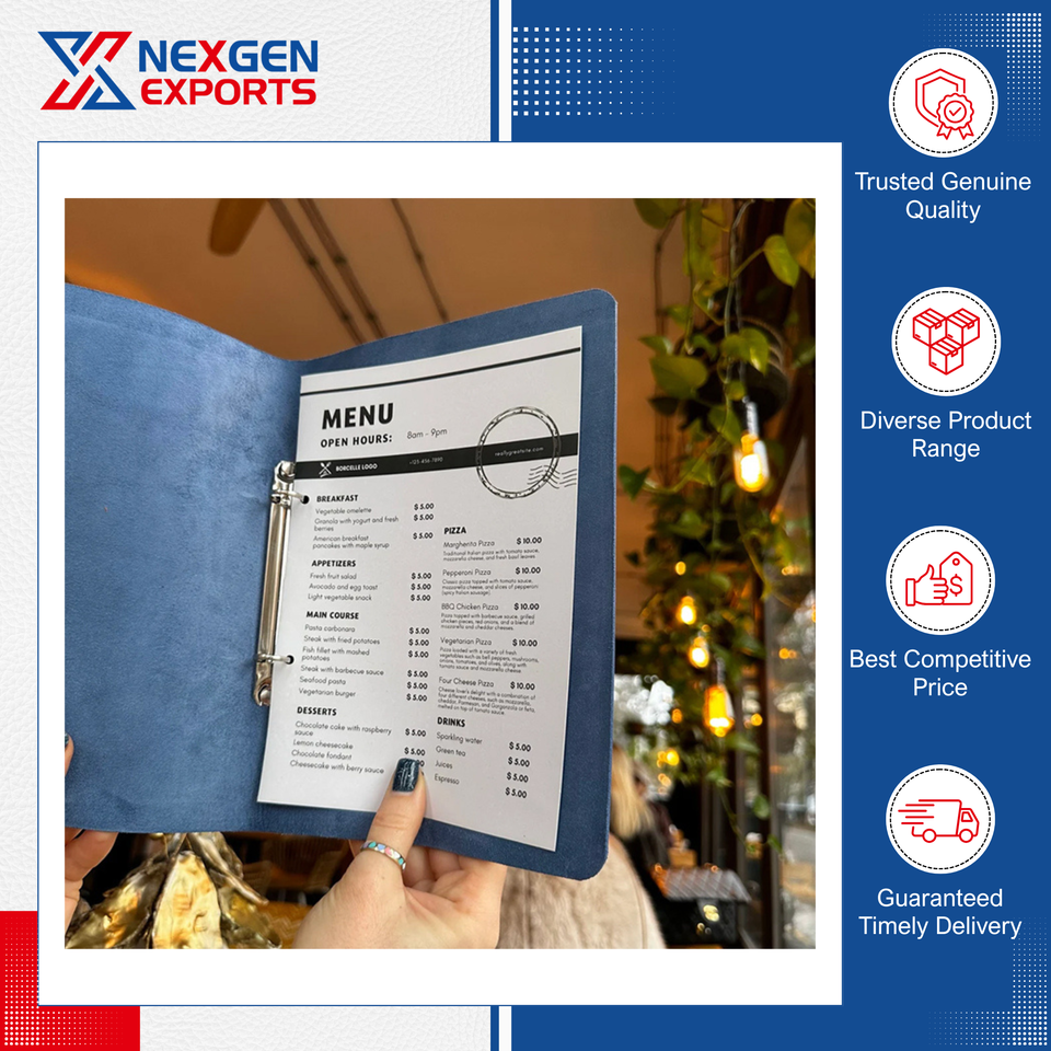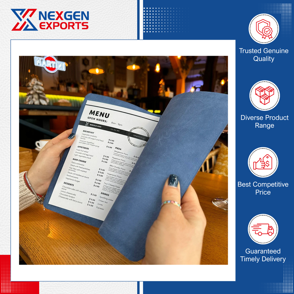 Nexgen Exports ปกเมนูหนัง PU คุณภาพดี งานแฮนด์เมด พับได้ พร้อมโลโก้สั่งทำ สำหรับใช้ในโรงแรมและร้านอาหาร